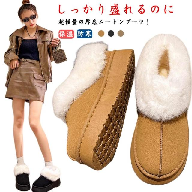 ムートンブーツ ショートブーツ ファーブーツ レディース もこもこ 雪 ムートンブーツ スノーブーツ 保温 暖かい 防寒 ローカット 冬 ボア 歩きやすい シューズ 靴 ボリュームソール 滑りにくい