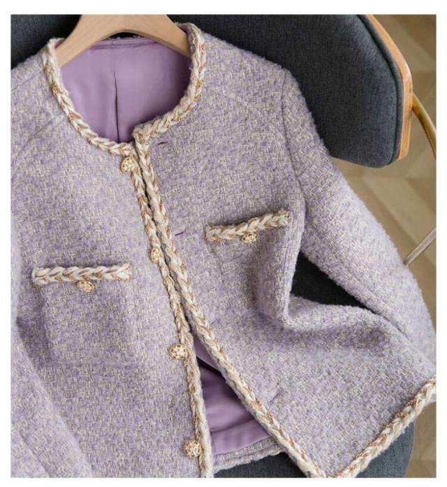 春 アウター レディース 秋 ジャケット パープル エレガント ツイード フォーマル 上品 オフィス 通勤 ママスーツ 入学式 冬 華やか カジュアル ビジネス ノーカラージャケット 入園式 卒業式