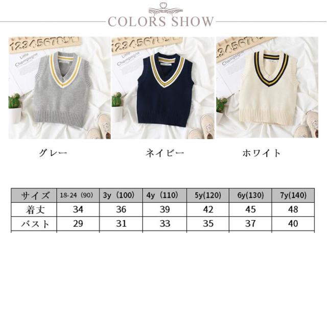 | プレッピーvネックベスト 90〜140の6サイズをご用意 男の子も女の子も着ていただけます 注意: 室温で手洗いしてください。漂白剤は使用しないでください。裏返して乾燥させないでください。アイロンソールプレートは110°以上に加熱しないでください。穏やかなドライクリーニングをしてください。 | |