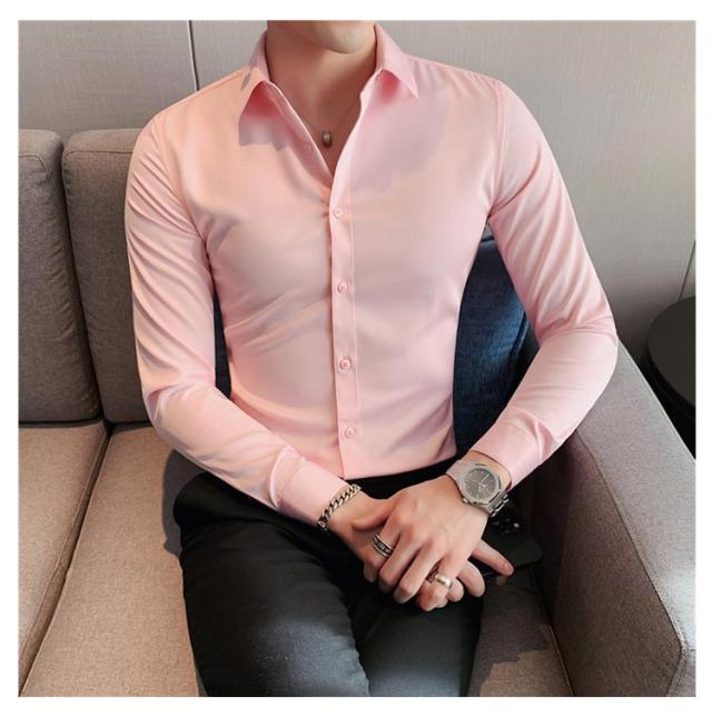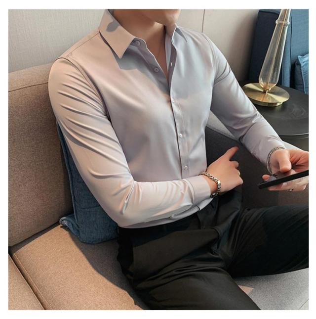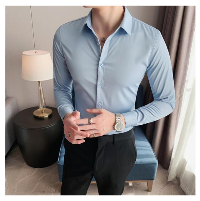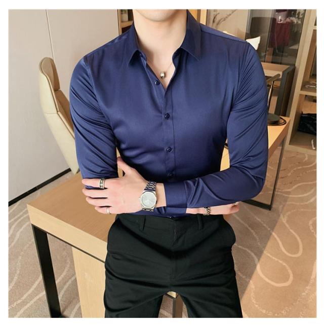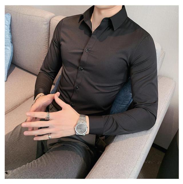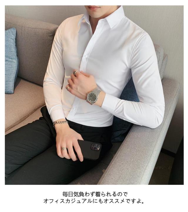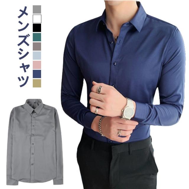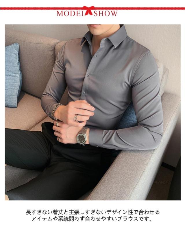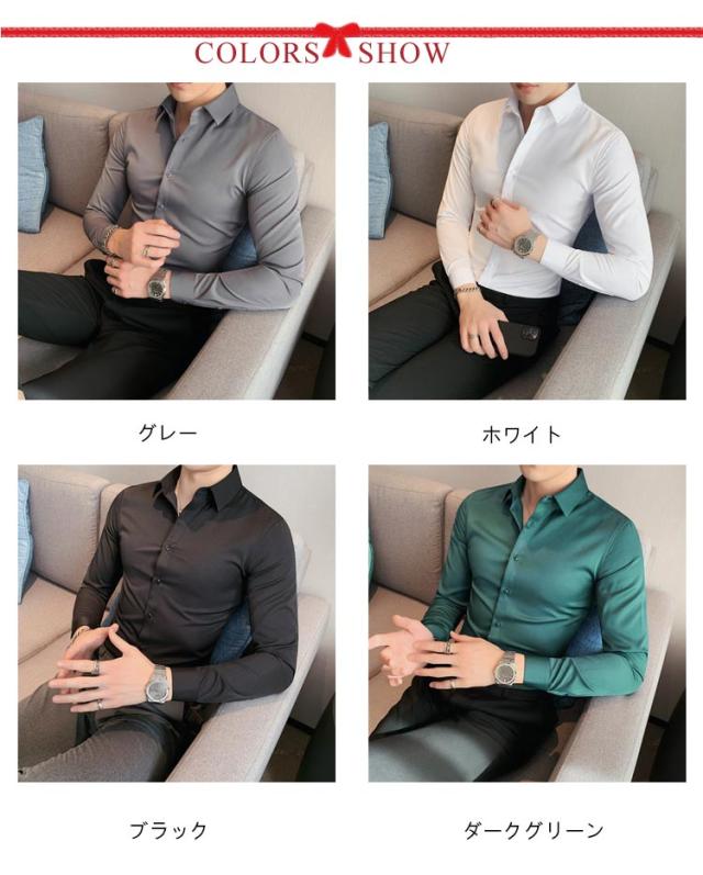 ワイシャツ ドレスシャツ シャツ しなやか ホスト シャツ ブラック メンズ ビジネス シャツ 光沢感 結婚式 メンズ パーティー 白 黒 フォーマル 冷感材質 スリム ステージ 2次会