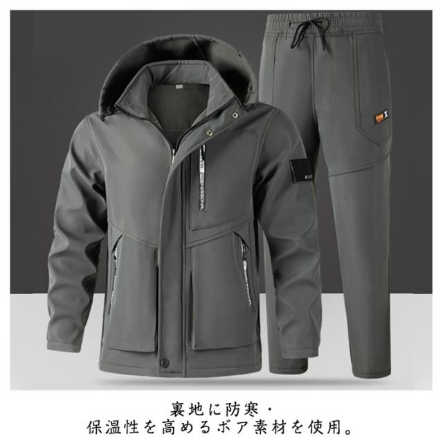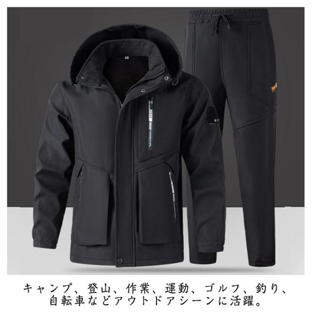 裏起毛 メンズ ワークパンツ 上下セット マウンテンパーカー 釣り 防寒着 厚手 撥水 マウンテンジャケット 防水 暖かい 秋冬 防寒 登山服 裏ボア ウインドブレーカー 作業着 防風 防寒パンツ 登山 メンズ 自転車 ゴルフ アウトドア
