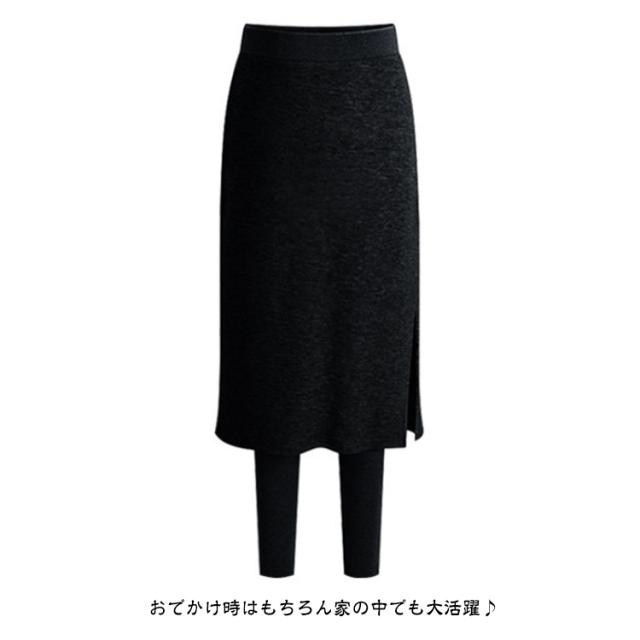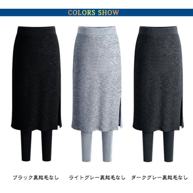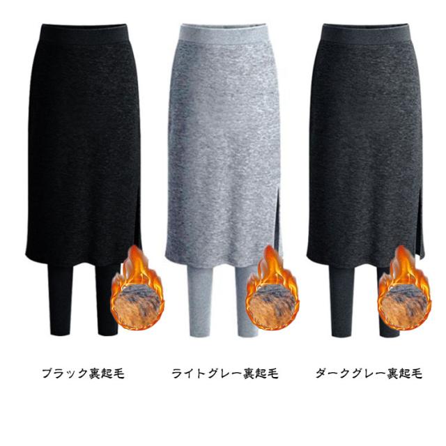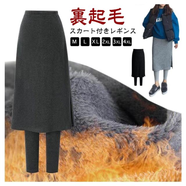 スカート付きレギンス 裏起毛 重ね着風 パンツ 裏起毛レギンス レギンス カジュアル レギパン スカッツ レディース 体型カバー 大人可愛い 秋冬 サイドスリット スカート付きレギンス 暖かい 通勤 無地 グレー ブラック