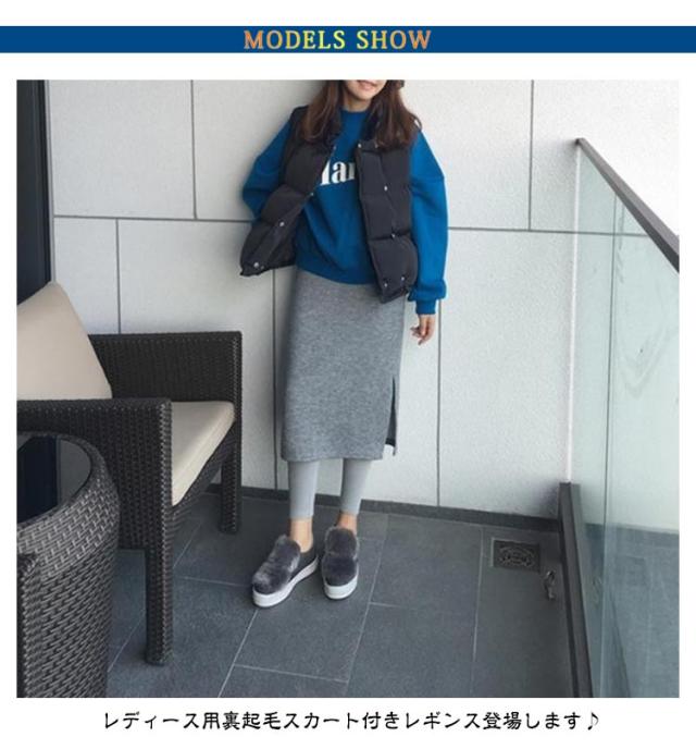 | 【スカート付きレギンス】【裏起毛】 レディース用裏起毛スカート付きレギンス登場します♪ シンプルなスカートとレギンスが一緒になった一着はくだけでトレンドのスタイル完成します。 サイドスリットがあるので、歩きやすい。 伸縮性抜群!大きいサイズもあります! これ一枚で暖かラクちん♪ おでかけ時はもちろん家の中でも大活躍♪ | |