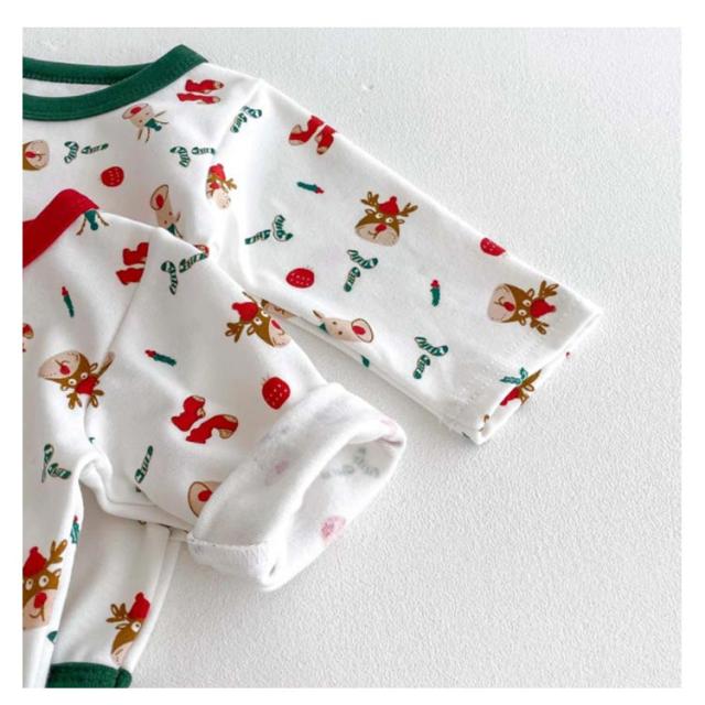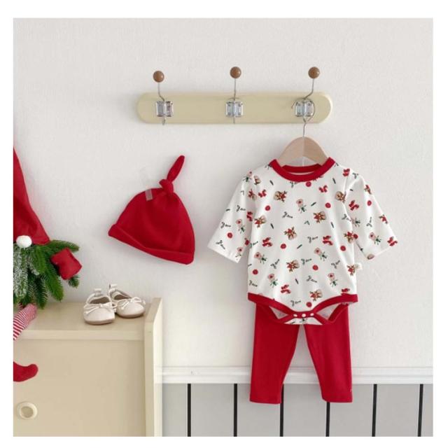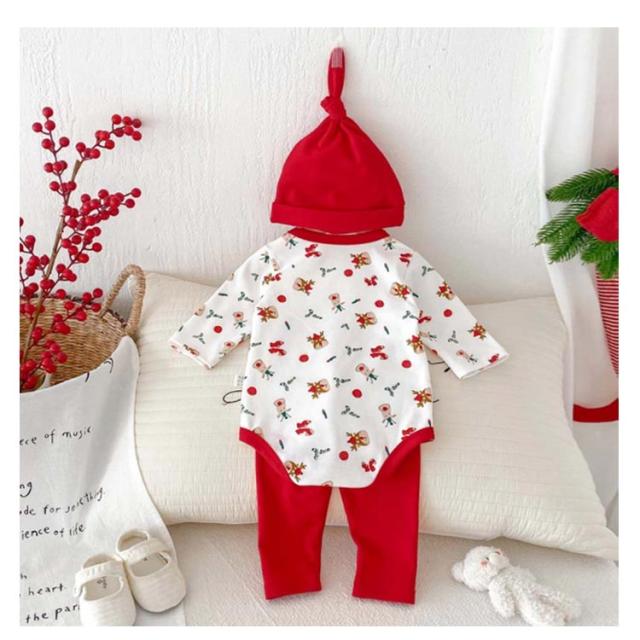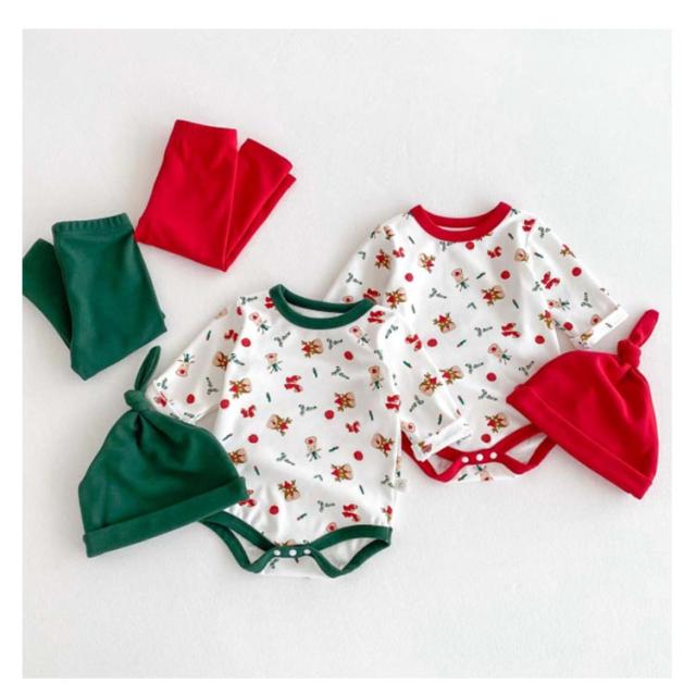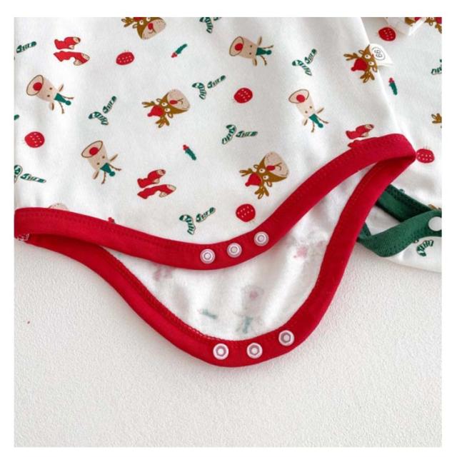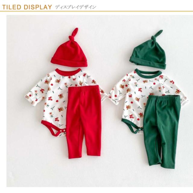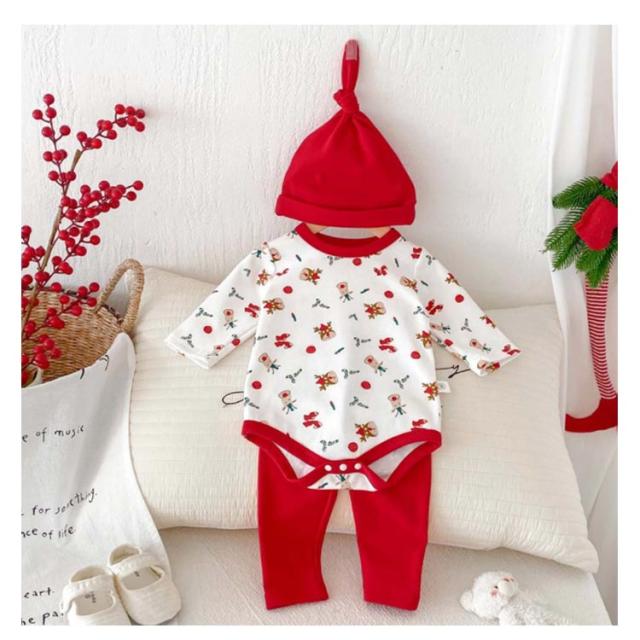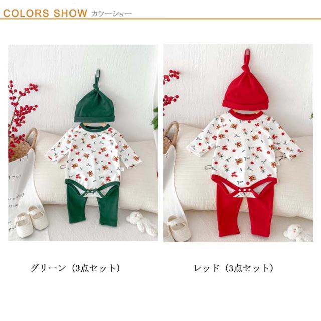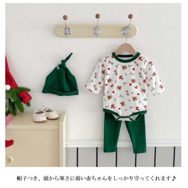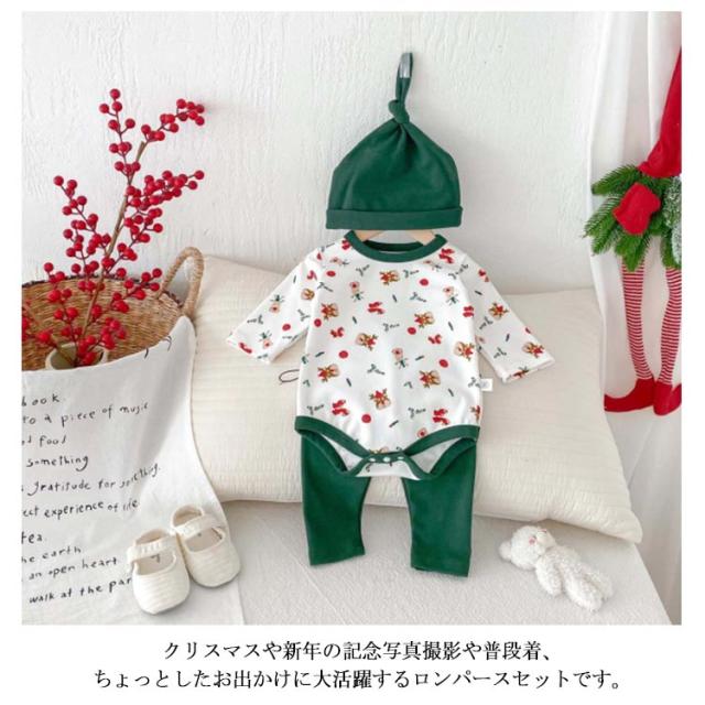 | クリスマス向けの可愛いベビー服3点セット。 トナカイなどクリスマスらしい柄、着るだけでクリスマスの雰囲気が一気に盛り上がります。 心地よい肌触りの生地、赤ちゃんの敏感なお肌にも安心です。 帽子つき、頭から寒さに弱い赤ちゃんをしっかり守ってくれます♪ クリスマスや新年の記念写真撮影や普段着、ちょっとしたお出かけに大活躍するロンパースセットです。 | |