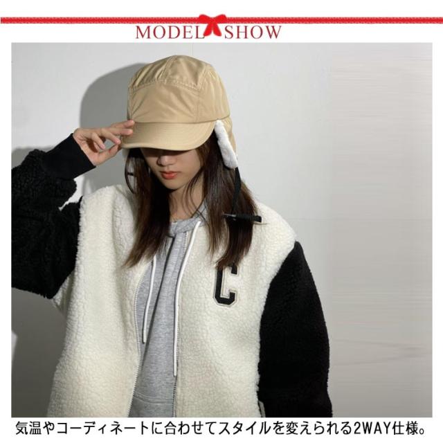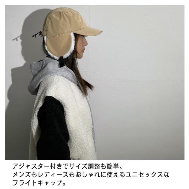 | 大きめ・深め・調整可能の耳当て付きキャップ。 気温やコーディネートに合わせてスタイルを変えられる2WAY仕様。 ふわふわフェイクファー付きの耳当て部分を垂らすととても暖かく、おしゃれ用だけではなく防寒にも最適。 アジャスター付きでサイズ調整も簡単、メンズもレディースもおしゃれに使えるユニセックスなフライトキャップ。 キャンプなどのアウトドアアクティビティはもちろん、自転車に乗る際にもぴったり。 普段使いはもちろん、ウィンタースポーツや、冬のゴルフにもおしゃれ。 | |