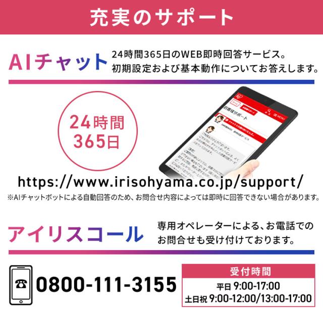 - 機械オンチのシニアでも使いやすいです。アイリスなので安心感があります。