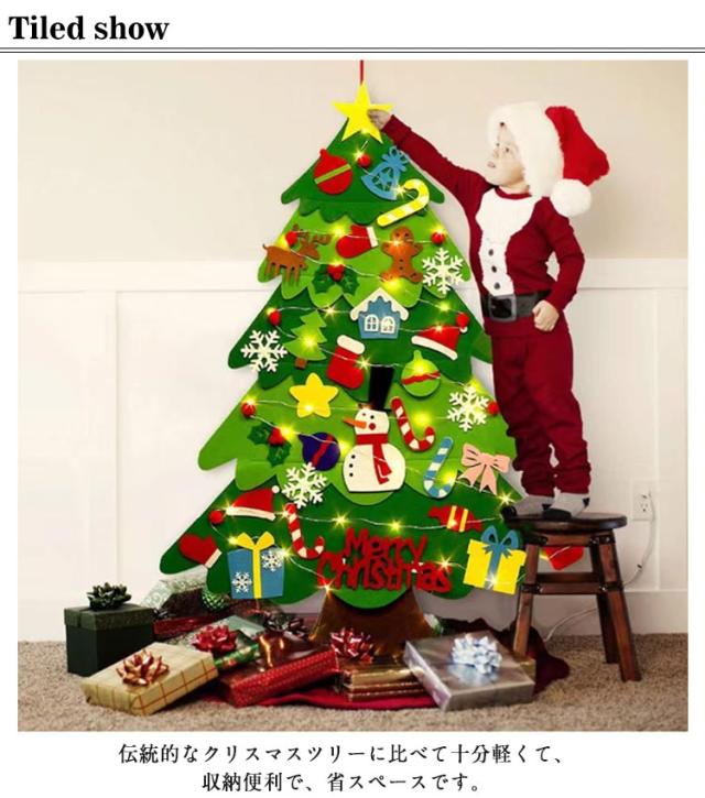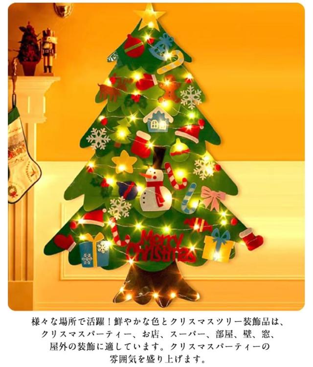 | 軽量 便利にクリスマス気分へ♪壁掛け式クリスマスツリーです。3M30球の電池式LEDライトも付属。 伝統的なクリスマスツリーに比べて十分軽くて、収納便利で、省スペースです。 様々な場所で活躍!鮮やかな色とクリスマスツリー装飾品は、クリスマスパーティー、お店、スーパー、部屋、壁、窓、屋外の装飾に適しています。クリスマスパーティーの雰囲気を盛り上げます。 これはあなたの子供にクリスマスを与えることができる最高の贈り物です。プレイ中に子供たちが想像力、創造性アップすることができ、子どもと一緒に遊びながら飾り付けが出来ます。 不要な時は飾り物を取り外し可能です。長く使い続けることができます。 あなたの家は、壁、ドア、冷蔵庫に美しくデザイン。されたDIYクリスマスフェルトツリーがあり、ブロックで目立つものになりましょう。 | |