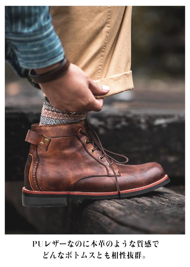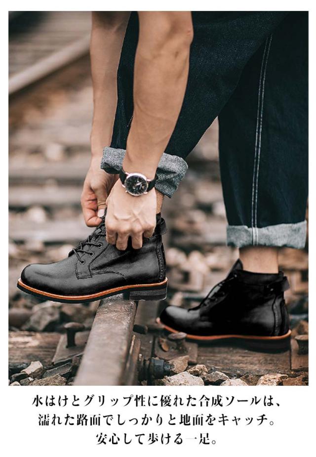 | 歩きやすく、今季トレンドなメンズレースアップブーツ。 PUレザーなのに本革のような質感でどんなボトムスとも相性抜群。 柔らかいアッパーは履き始めから足なじみが良く、通勤や通学、デートシーンなど様々な場面で重宝すること間違いなし。 水はけとグリップ性に優れた合成ソールは、濡れた路面でしっかりと地面をキャッチ。安心して歩ける一足。 チノパン、デニムなど大人きれいなスタイルを演出できるアイテム。 | |