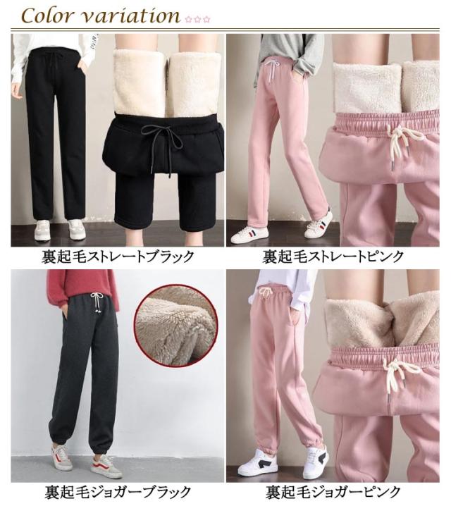 | 色 | 裏起毛ストレートブラック 裏起毛ストレートピンク 裏起毛ジョガーブラック 裏起毛ジョガーピンク |