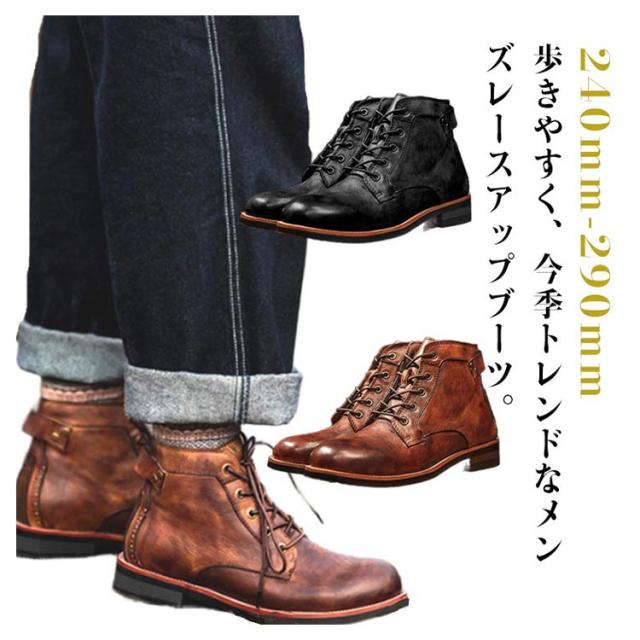 PUレザー レースアップ ショートブーツ バイクブーツ メンズブーツ ワークブーツ 編み上げ 合靴 作業靴 防水 メンズブーツ ブラック 防滑 茶色 大きサイズ 240-290mm