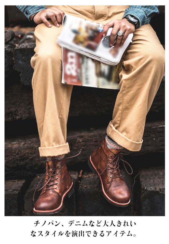 | 歩きやすく、今季トレンドなメンズレースアップブーツ。 PUレザーなのに本革のような質感でどんなボトムスとも相性抜群。 柔らかいアッパーは履き始めから足なじみが良く、通勤や通学、デートシーンなど様々な場面で重宝すること間違いなし。 水はけとグリップ性に優れた合成ソールは、濡れた路面でしっかりと地面をキャッチ。安心して歩ける一足。 チノパン、デニムなど大人きれいなスタイルを演出できるアイテム。 | |