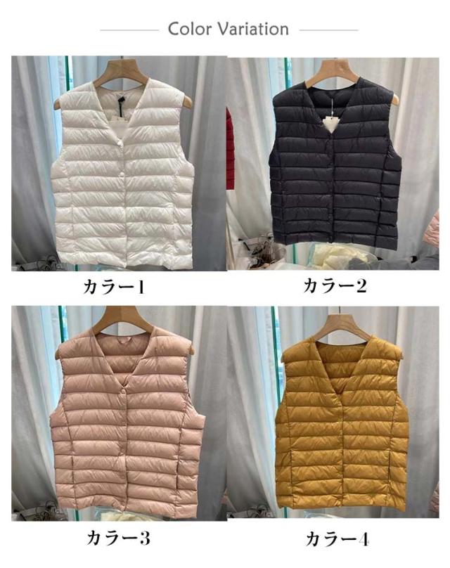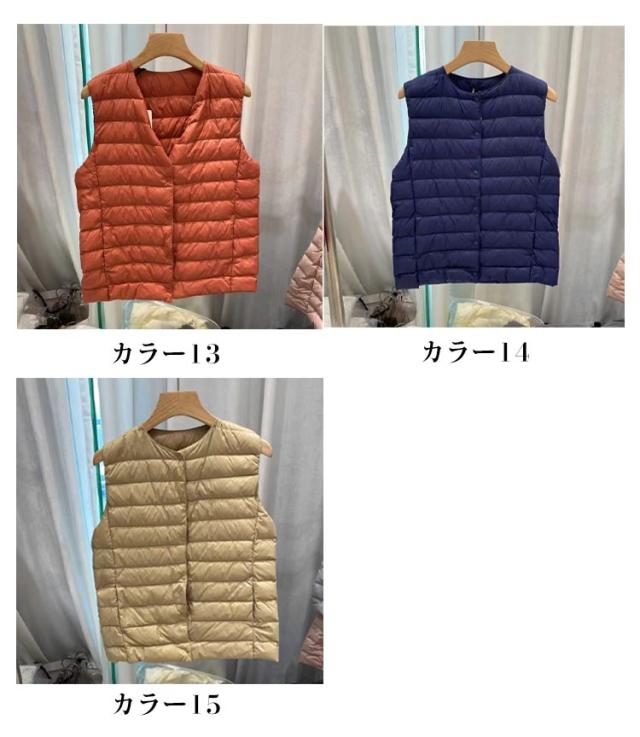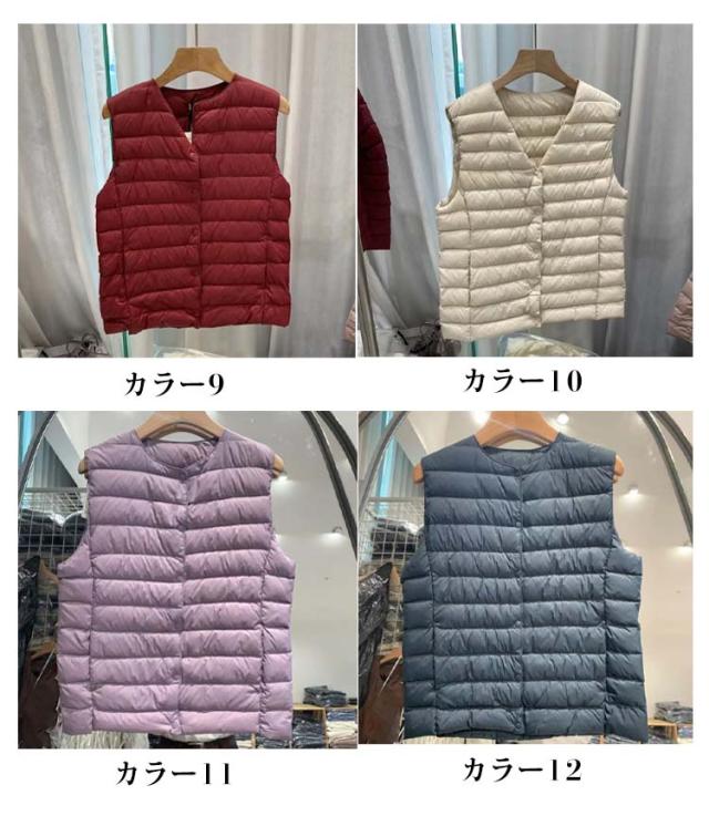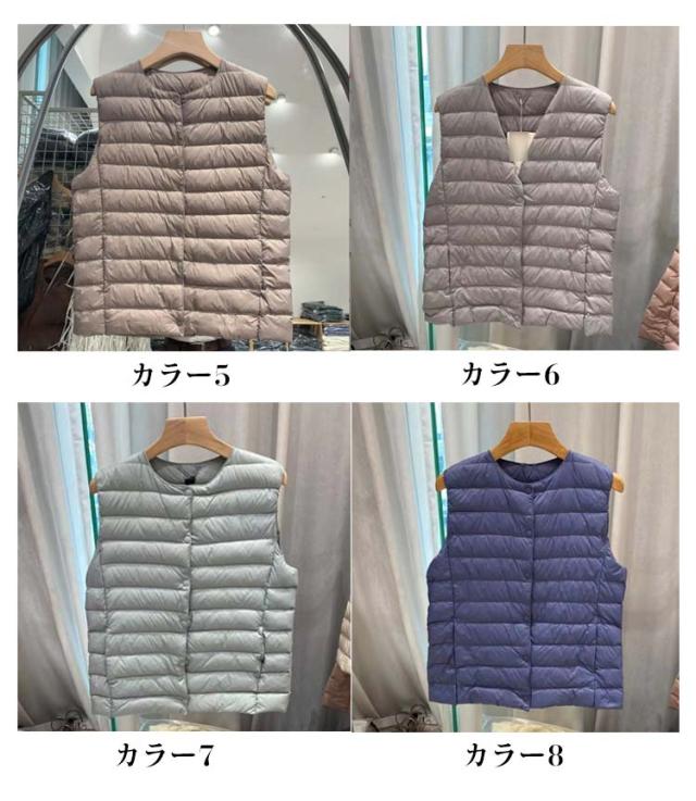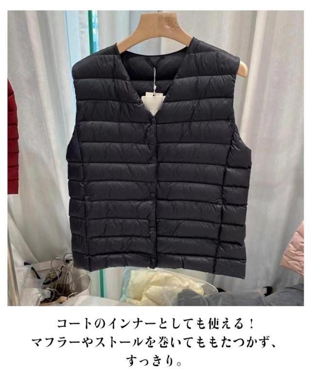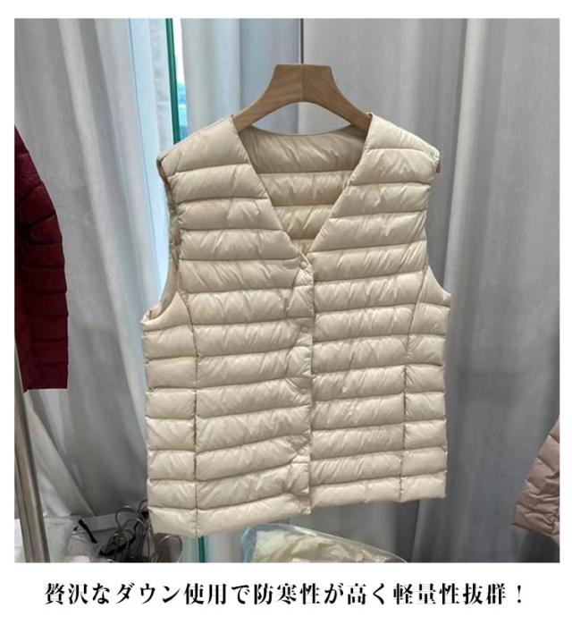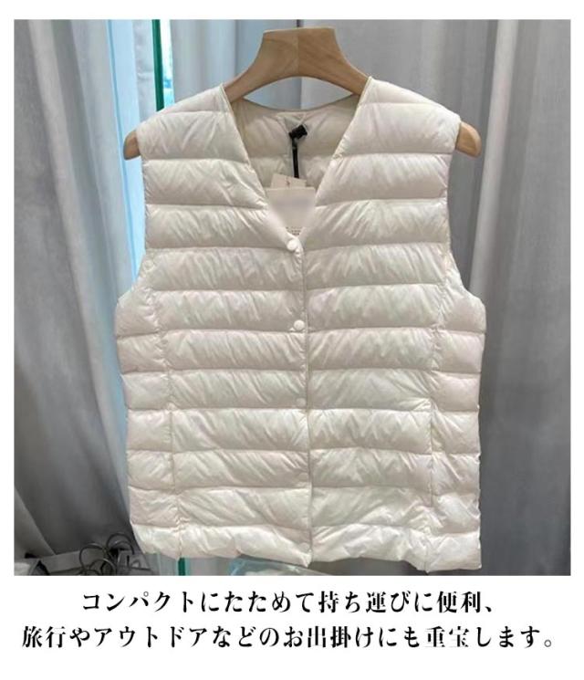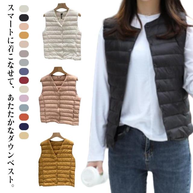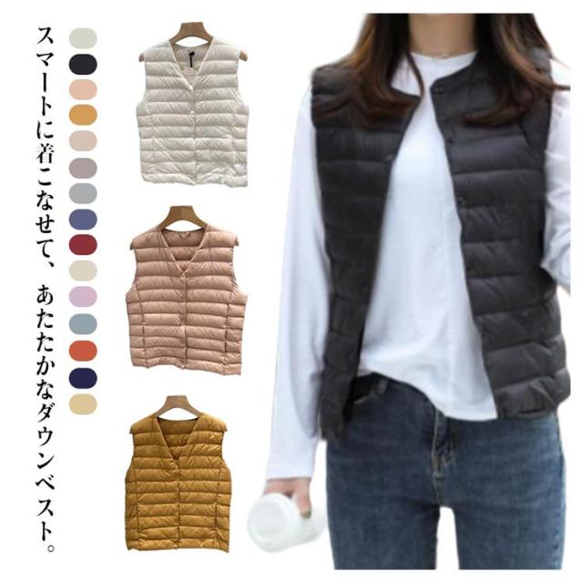 軽い クルーネック おしゃれ 防寒 ダウンベスト インナーダウン ジャケット 冬服 ダウンジャケット vネック レディース ショート丈 シンプル ダウンベスト アウター 秋 冬 春 ノーカラー 旅行 通勤 通学 大きサイズ