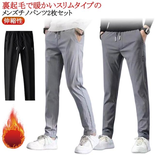 イージーパンツ ストレッチ 冬服 暖 スキニーパンツ ウエストゴム パンツ メンズ 秋冬 美脚 細身 防寒 ゴルフパンツ 2枚セット 裏起毛 伸縮性 無地 シンプル おしゃれ パンツ グレー 秋服 カジュアル メンズ 大きいサイズ 暖かい
