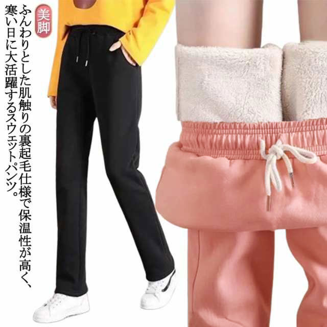 ストレートパンツ 暖かい 超極厚 パンツ 裏起毛パンツ 大きいサイズ 冬 秋冬 イージーパンツ 無地 防寒 ロングパンツ 裏ボア 極暖 厚手 部屋着 ウエストゴム カジュアル 美脚 レディース ストレートパンツ 裏起毛 黒 ブラック ピンク