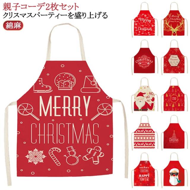 クリスマスエプロン かわいい エプロン 親子コーデ2枚 送料無料 飲食店 キッチン かわいい イベント おしゃれ ハロウィン 店舗スタッフ用 エプロン レディース メンズ ワークエプロン かわいい 接客売り子用 北欧風 エプロン カフェ 花屋 保育士 女性 女の子
