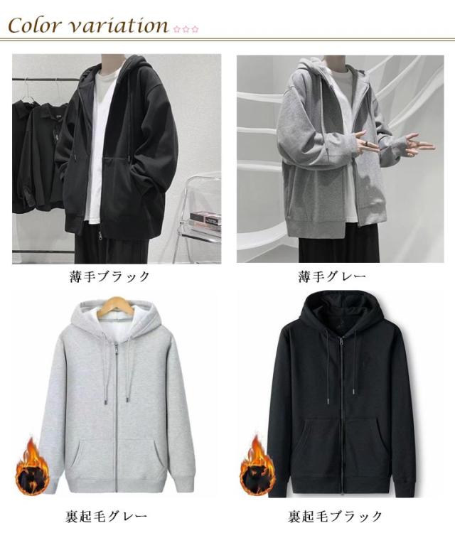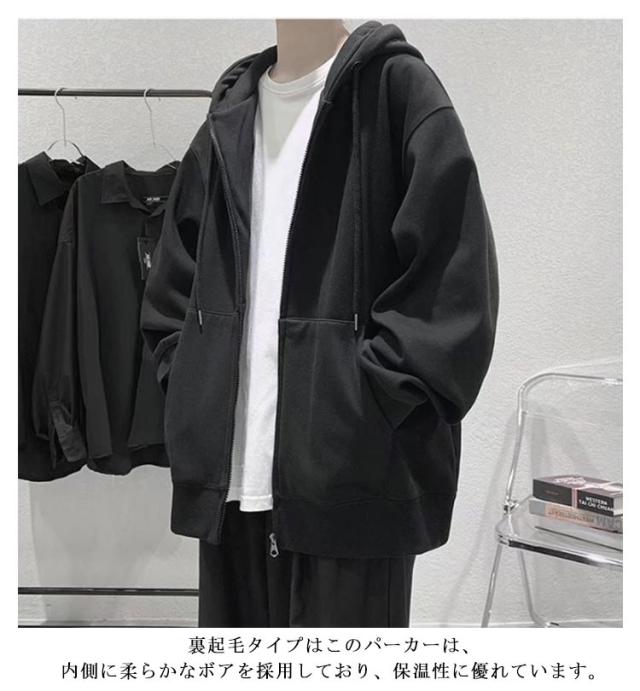 | 2タイプ選べるメンズパーカー 裏起毛タイプはこのパーカーは、内側に柔らかなボアを採用しており、保温性に優れています。春から冬にかけての長いシーズンで活躍します。 シンプルな無地デザインで、どんな服装にも簡単に合わせることができます。 さらに、フード付きで風からもしっかりと守ります。 部屋着としてはもちろん、外出時のカジュアルなスタイルにもピッタリです。 ジップアップ式なので着脱が簡単で、急な気温の変化にも対応できます。 | |