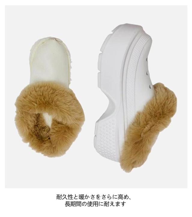 | クロッグス シューズインサートライナー 最も寒い日でも、普通の日でも、このふわふわのファー裏地のインソールで一日中快適にお楽しみいただけます。 ファーの端に沿って小さな穴が開いているので、靴に簡単に引っ掛けて固定できます。 置いて押し下げるだけで、最適な快適さとサポートが得られます。 耐久性と暖かさをさらに高め、長期間の使用に耐えます | |