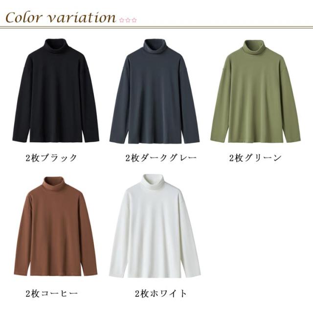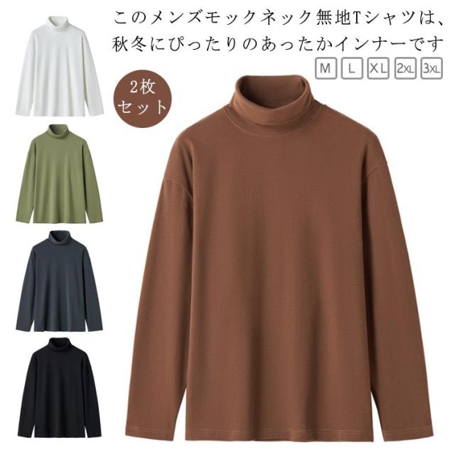 【2枚セット】Tシャツ インナーシャツ メンズ モックネック 無地Tシャツ 長袖Tシャツ ティーシャツ 肌着 ロンティー ロンT ハイネック トップス 秋冬 インナー あったか カジュアル 全5色