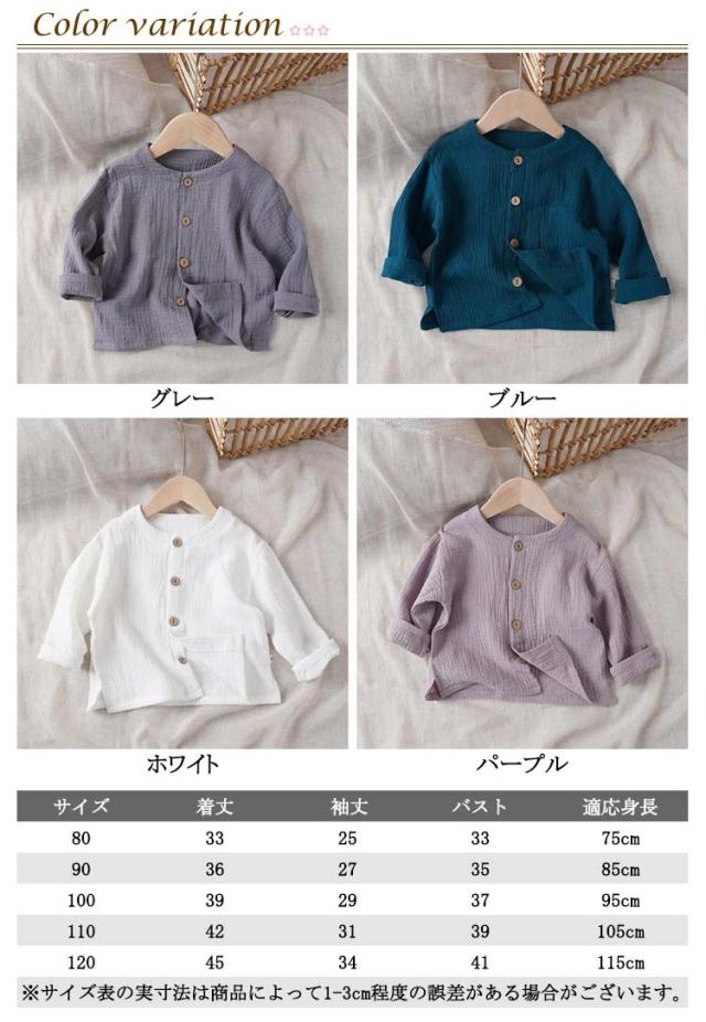 80 130 女の子 こども服 綿 ガーゼシャツ 男の子 無地 子供服 薄手 90 110 ブラウス カジュアル 長袖 キッズ コットン ベビー 80 羽織 蒸れない 春夏 ベビー服 100 トップス 通気 おしゃれ 120