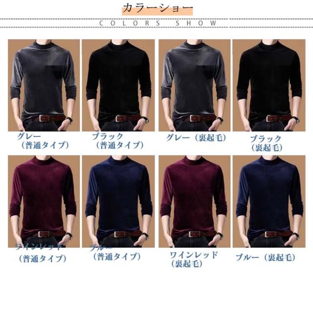 メンズ 防寒 Tシャツ 裏起毛 カットソー 起毛 ベロアカットソー 暖かインナー ベロアカットソー トップス ロンT 2タイプ 長袖 長袖Tシャツ ヒートテック 秋冬 厚手 暖かい ハイネック 部屋着 あったか 肌着 ヒートインナー 無地 大きいサイズ