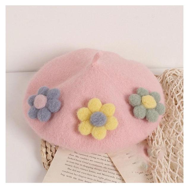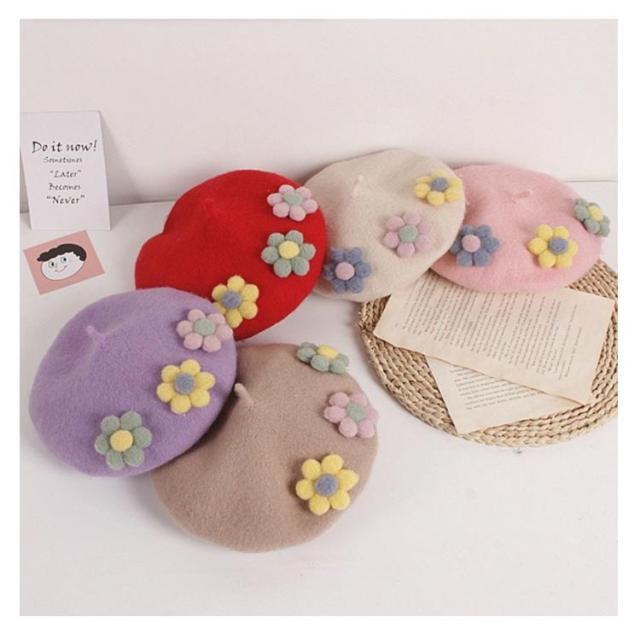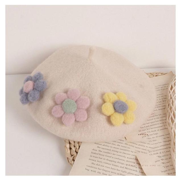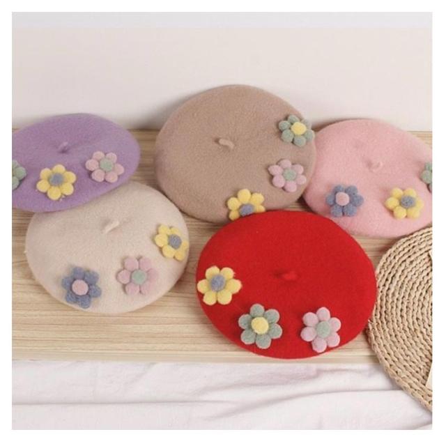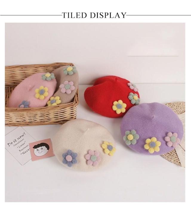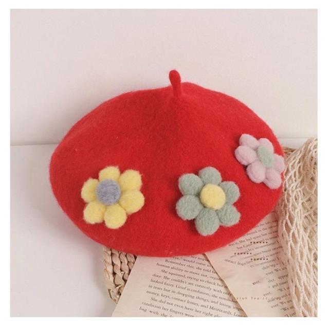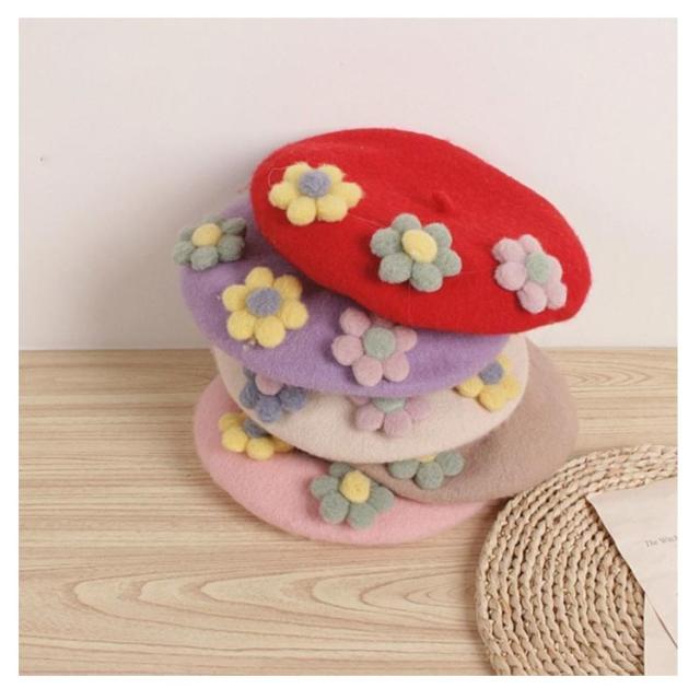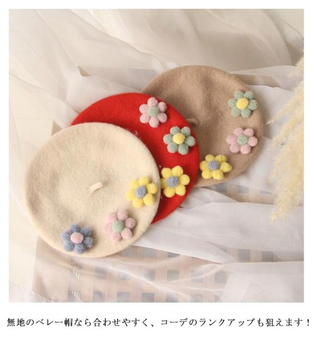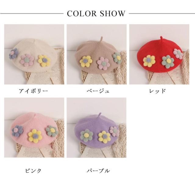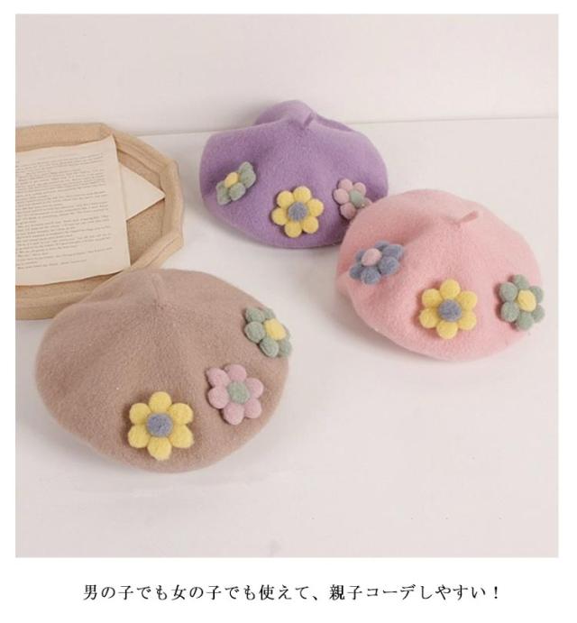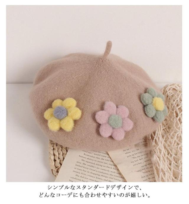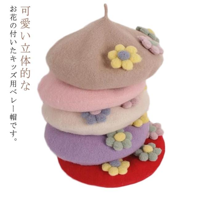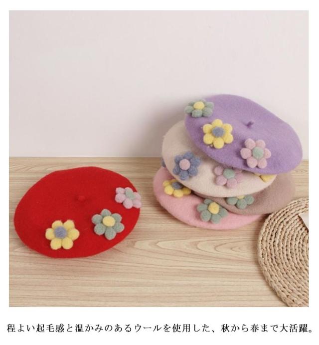 女の子 フラワー キッズ ベレー帽 フラワーモチーフ かわいい 帽子 フェルトベレー帽 秋冬 ポッチ ベレー フェルトウール バスクベレーハット キャップ 立体的 飾り付き 子ども 防寒 あったか 秋 冬 送料無料 カラバリ豊富 シンプル
