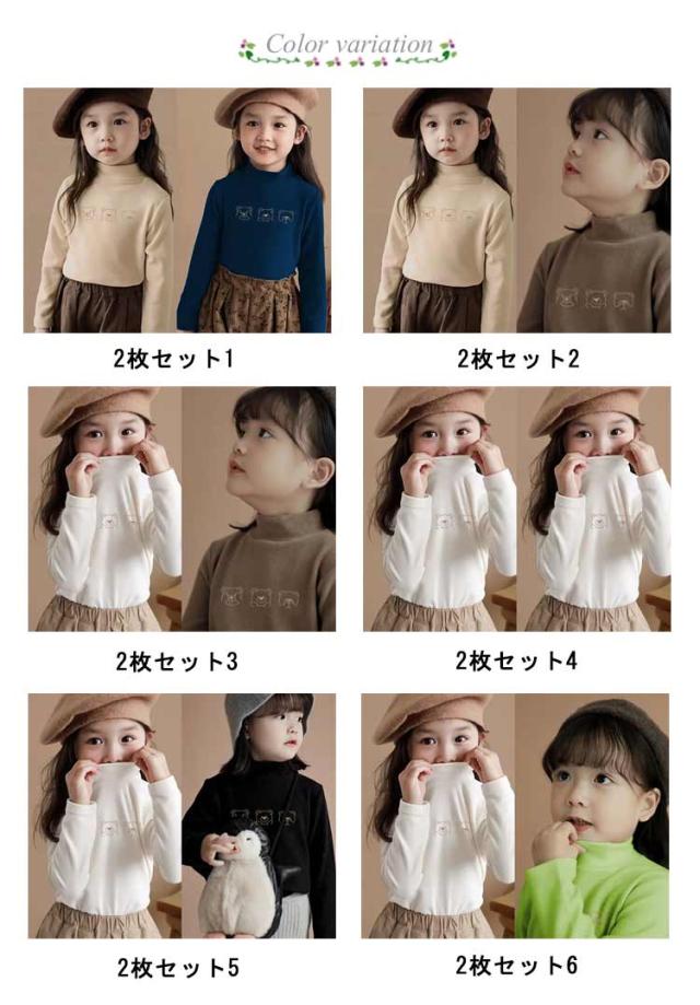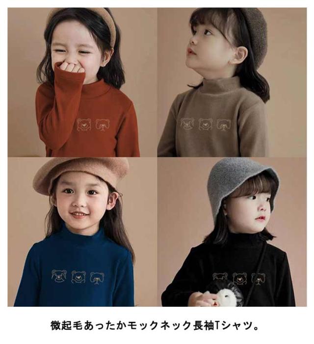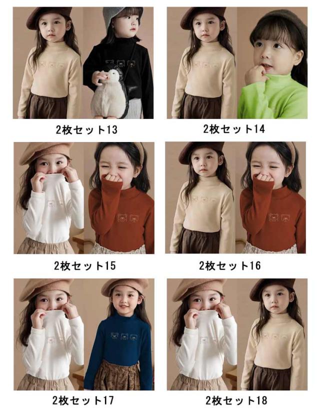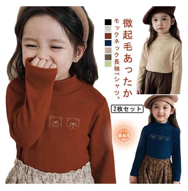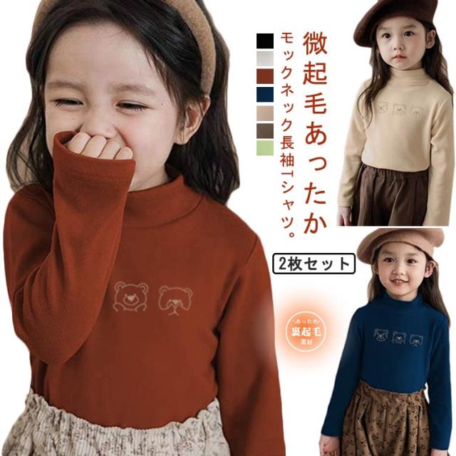 子供服 長袖Tシャツ 微起毛 2枚セット キッズ 起毛 tシャツ カットソー ハイネック トップス 男の子 女の子 防寒 秋冬 インナー シャツシンプル 暖かい ジュニア シンプル カジュアル