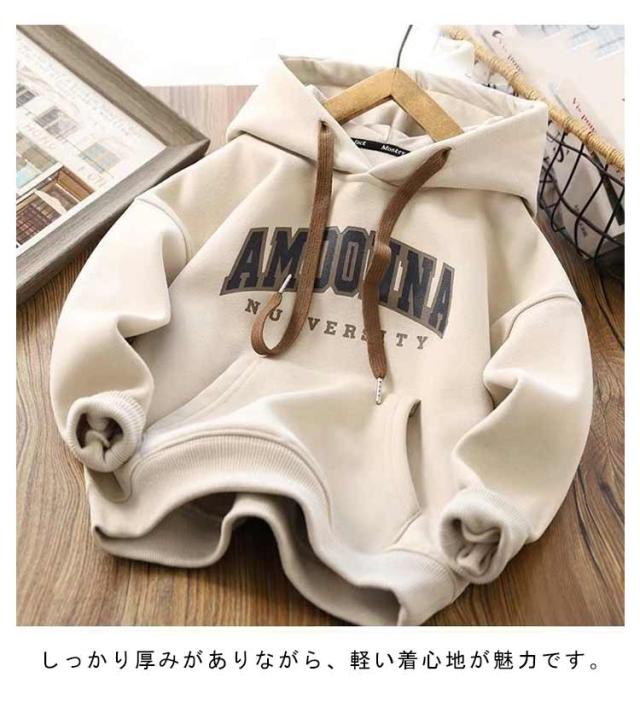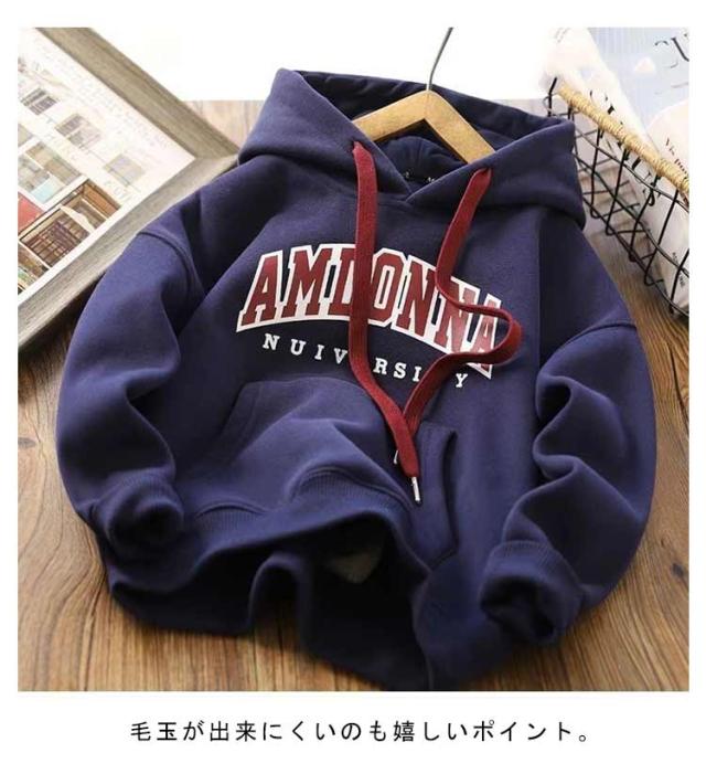 裏起毛 パーカー キッズ 長袖 トレーナー 子供服 女の子 フード付き 裏ボア 男の子 スウェット トップス プルオーバー 綿 春 秋 冬 暖かい 厚手 柔らかい あったか 小学生 幼稚園 通園 通学 カジュアル