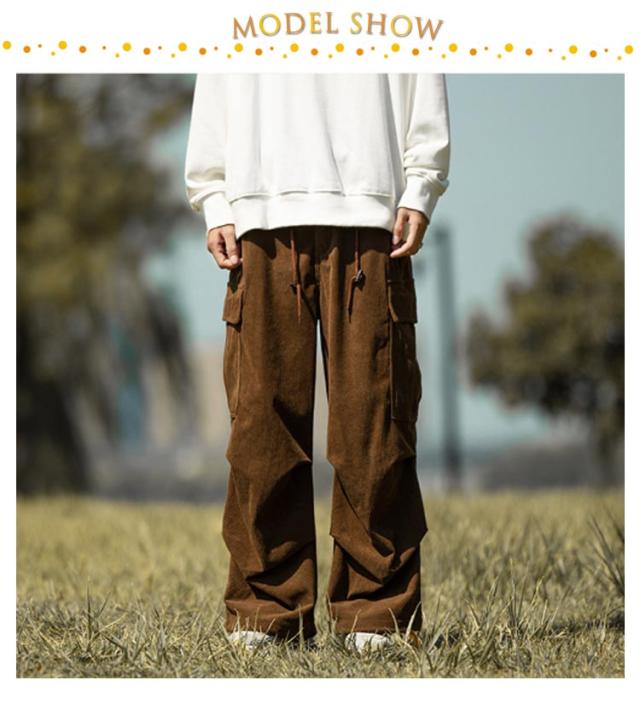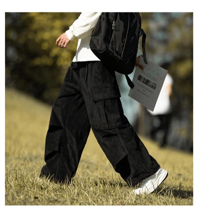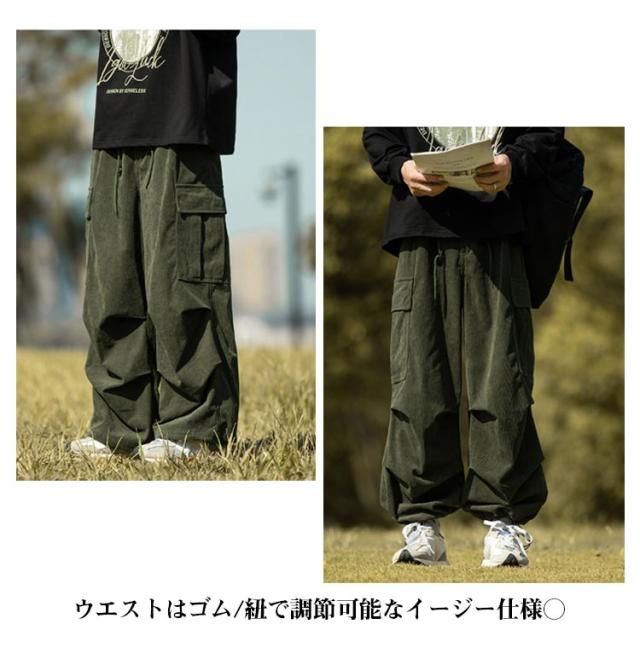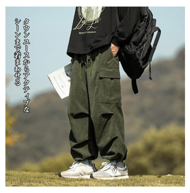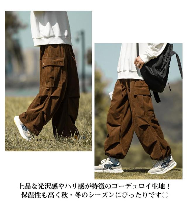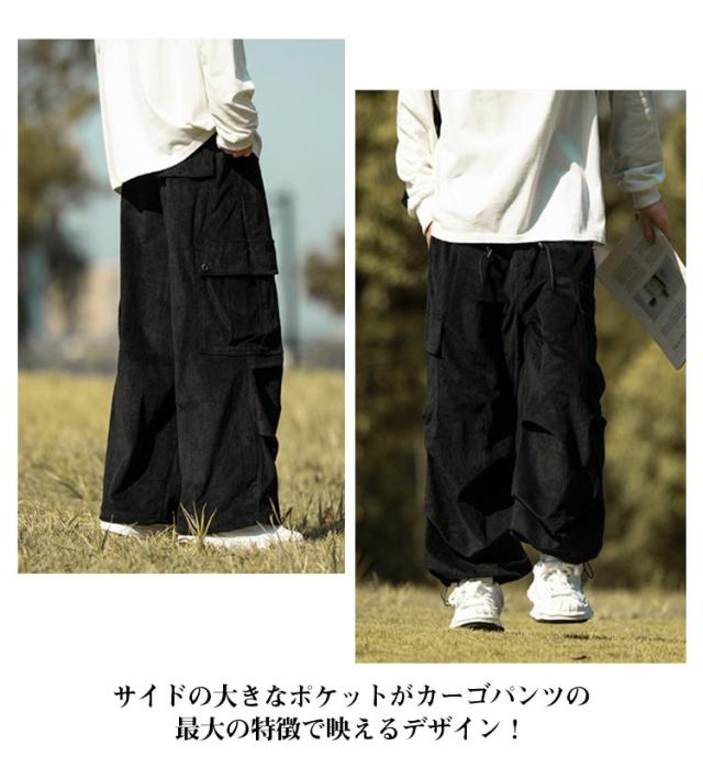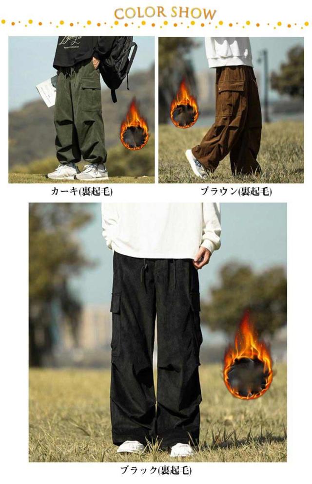 裏起毛 ワイドパンツ カーゴパンツ コーデュロイ メンズ 秋冬 コーデュロイパンツ カーゴ ストレートパンツ ミリタリー 厚手 暖かい 保温 防寒 裏起毛パンツ 暖パン カジュアルパンツ ワイド ゆったり カジュアル ストリート 大きいサイズ カーキ 黒 【送料無料】