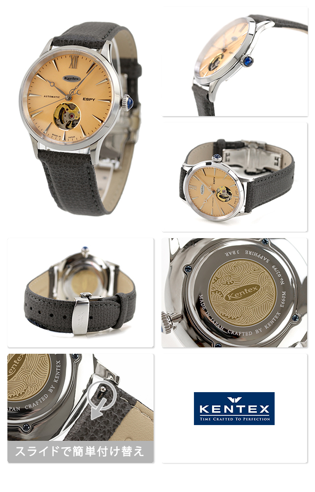 ケンテックス エスパイ ドレスオープンハート 自動巻き 腕時計 ブランド メンズ 数量限定モデル オープンハート Kentex E660M-03 アナログ サーモン グレー 日本製