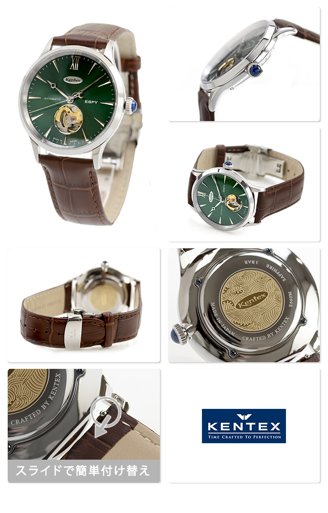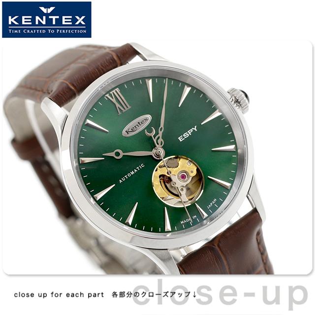 ケンテックス エスパイ ドレスオープンハート 自動巻き 腕時計 ブランド メンズ オープンハート Kentex E660M-04 アナログ ビリヤードグリーン ブラウン 日本製