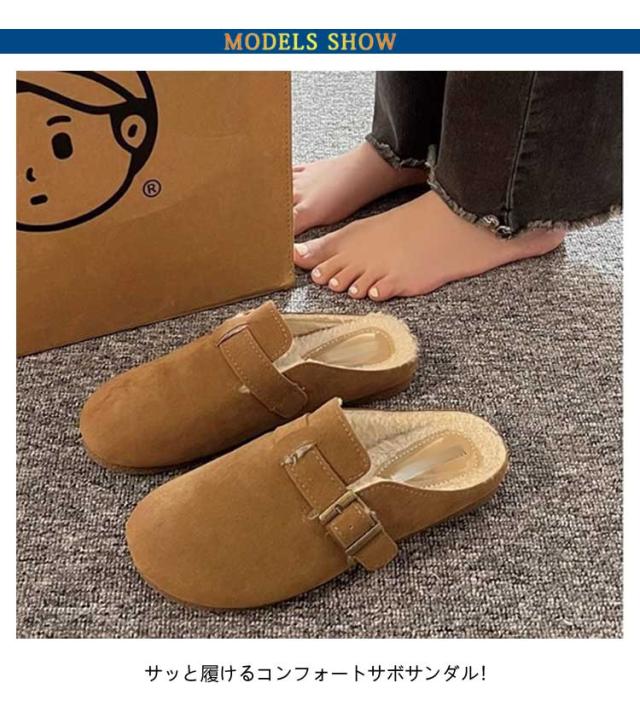 サボサンダル レディース 裏起毛 シューズ ボア もこもこ あったか かわいい 靴 かかとなし サボ オフィス 仕事履き サンダル リラックス おしゃれ コンフォート 普段履き シンプル カジュアル 無地 スリッパ スリッポン ぺたんこ 防寒 暖かい