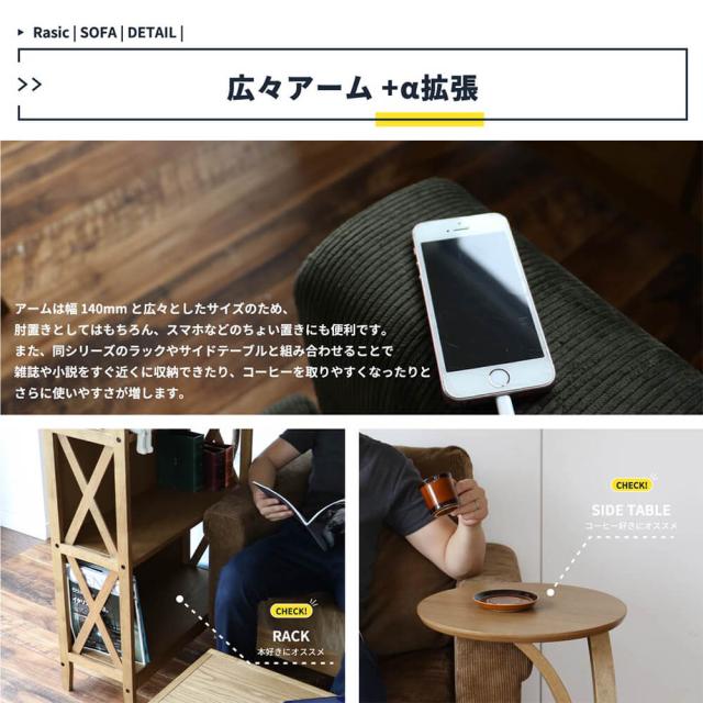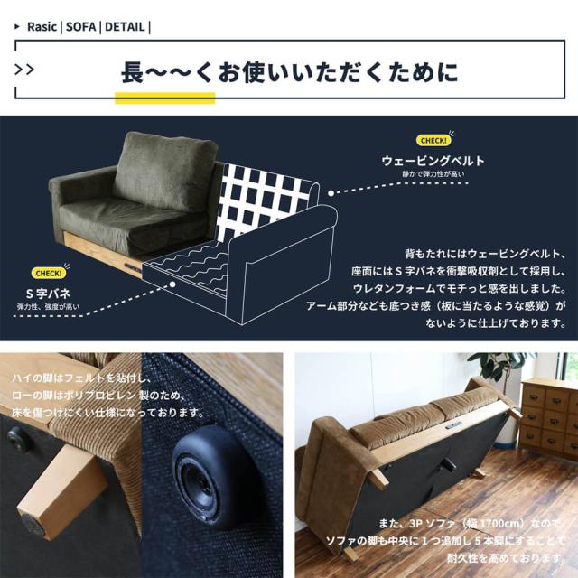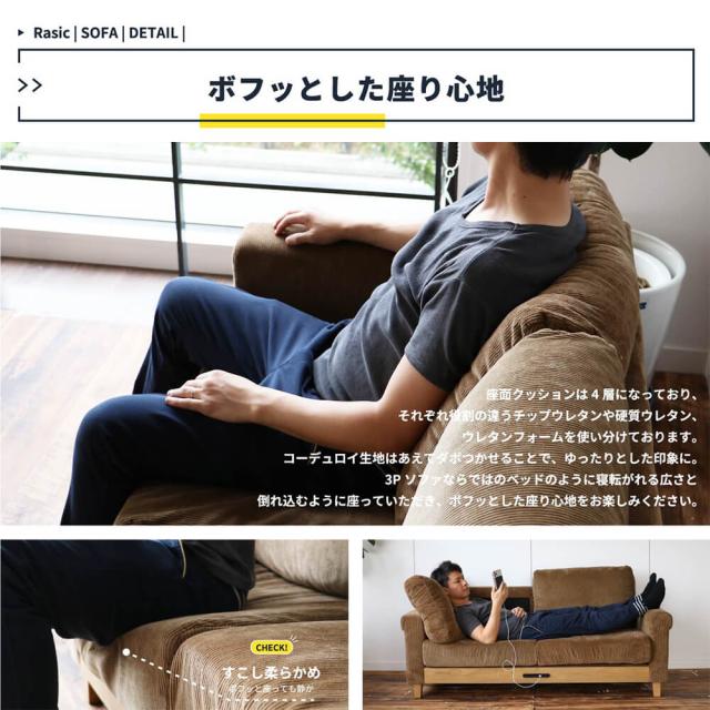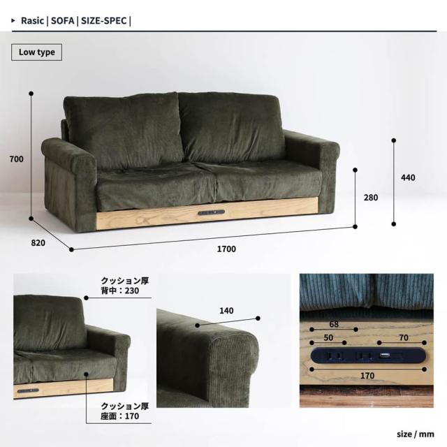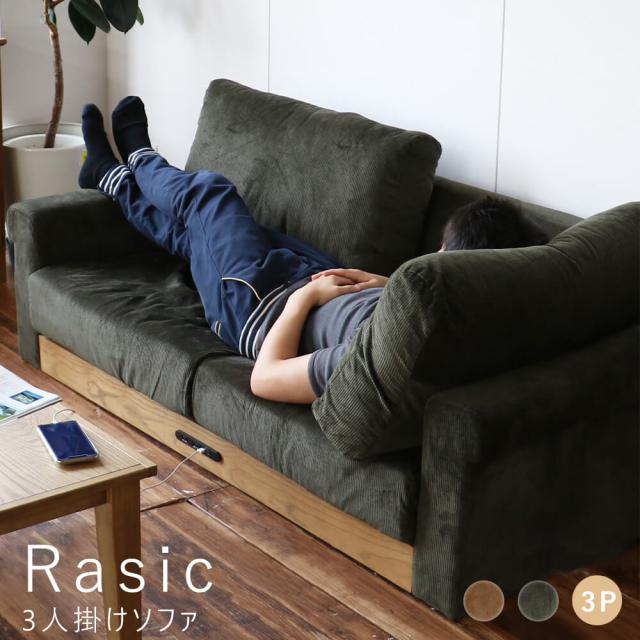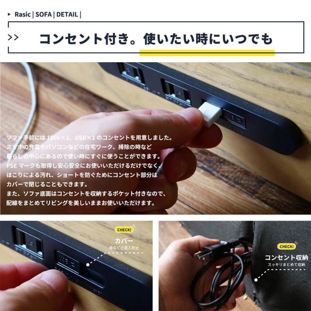 Rasic(ラスティック)3人掛けソファ ソファ コンセント付き 幅170cm ソファー コンセント ローソファ