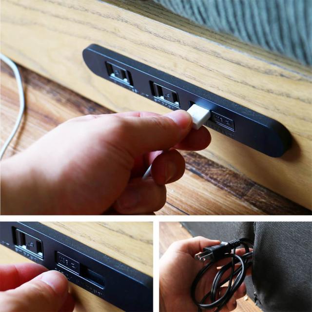 ソファ手前には100Vx2、USBx1のコンセントを用意しました。
