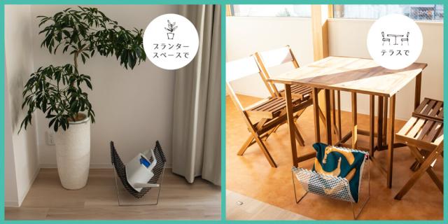 ソファやベッド、テーブル・デスクの脇にちょこんと置いて、かばんやバッグ、読み掛けの雑誌・本やショールなど。