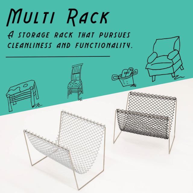 耐久性抜群の金網を大胆にフューチャーしたステンレスフレームのマルチラック。