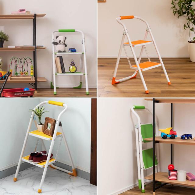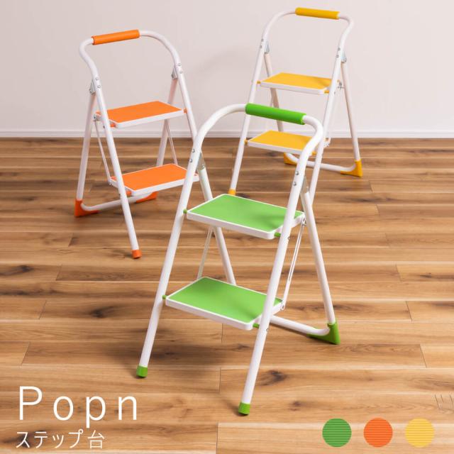 Popn(ポップン) ステップ台 脚立 折りたたみ 踏み台 2段 ステップ台 折り畳み 丈夫 スリム 手すり付き 手すり 子供
