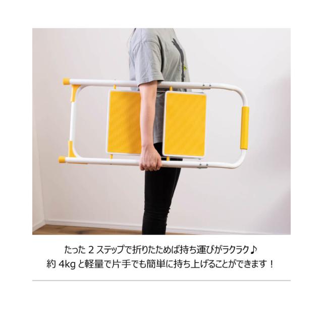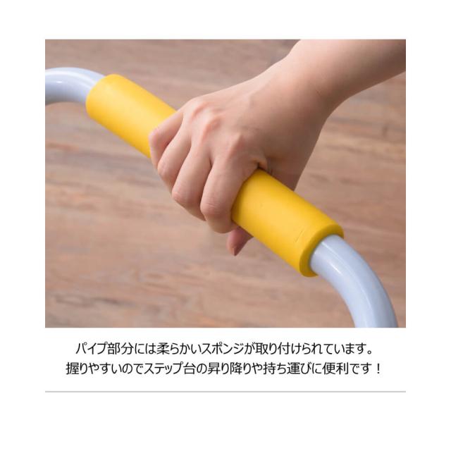 パイプにも柔らかく握りやすいスポンジが取り付けられているので、ステップの上り下りにもしっかりと支えられます。
