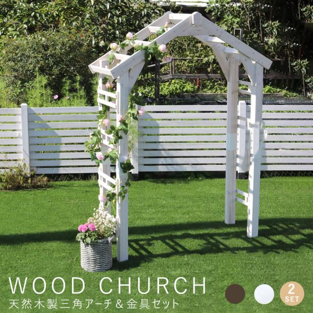 WOOD CHURCH(ウッドチャーチ)天然木製三角アーチ&金具セット 金具付き 門 木製 ホワイト ダークブラウン おしゃれ