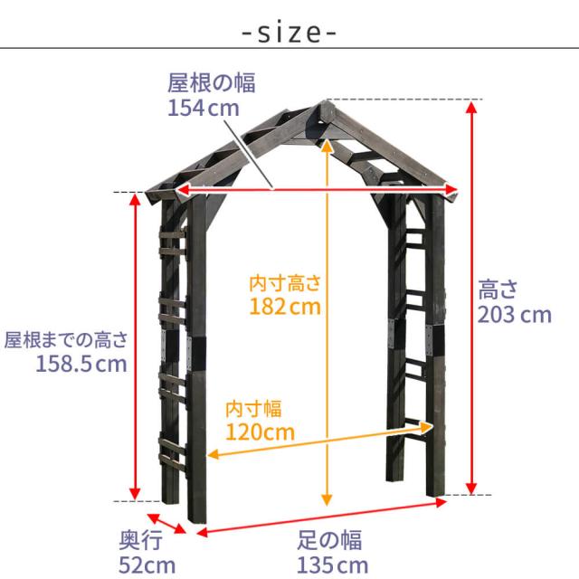 ■本体アーチ:幅 154cm × 奥行 52cm × 高さ 203cm