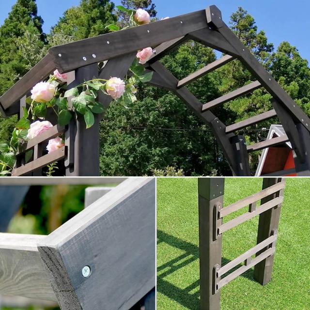 アーチ:杉材天然木(ステイン塗装)固定金具:スチール(粉体塗装)