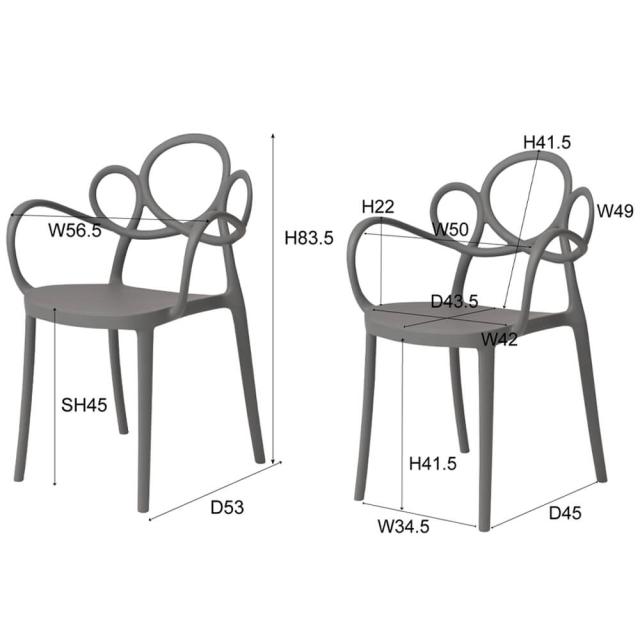 本体 : 幅 56.5cm x 奥行 53cm x 高さ 58.5cm x 座面高 45cm重量 : 4.5kg