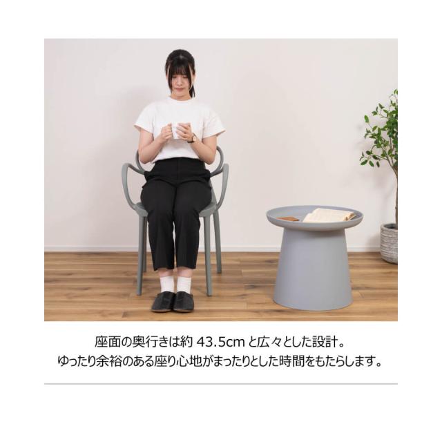座面の奥行きは約43.5cmと広々とした設計で、ゆったり余裕のある座り心地です。