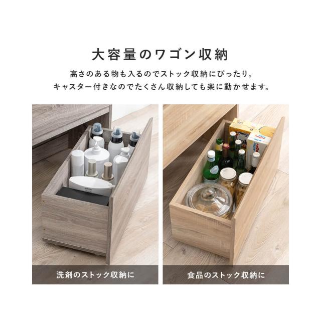 下部キャスター付きワゴンは大容量なので洗剤や食品のストック収納に最適です。