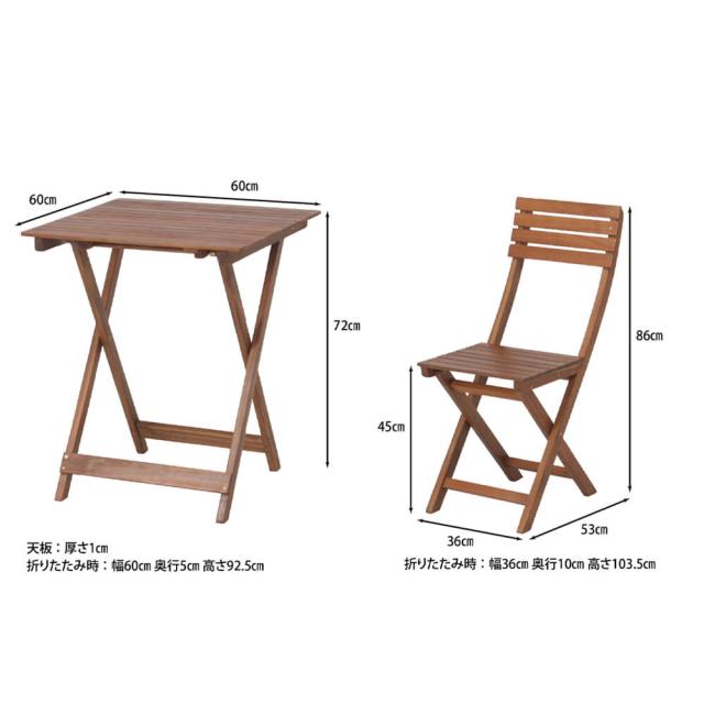 こちらの商品は、テーブル、チェア2脚の計3点セットとなります。