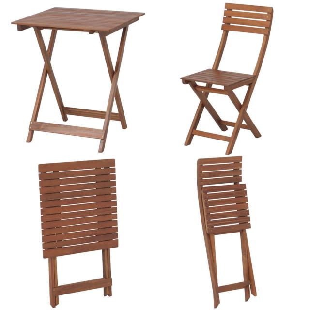 アウトドアやお庭に便利な折り畳みのテーブルとチェアのセット。