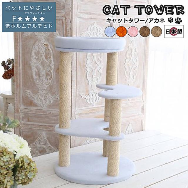 Akane(アカネ)国産 キャットタワー キャットタワー 据え置き 国産 日本製 キャットツリー スリム 省スペース 小型 ねこ