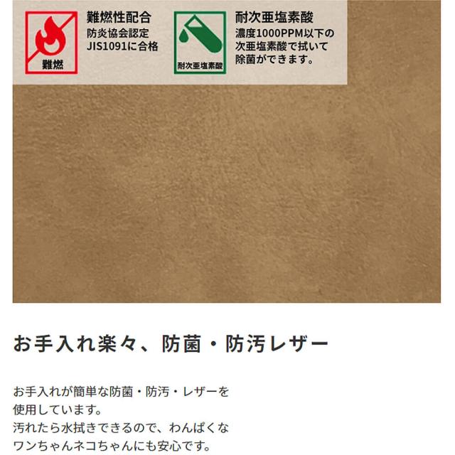 レザー張りなので汚れても簡単に拭き取れます。わんぱくなワンちゃんネコちゃんにも安心です。
