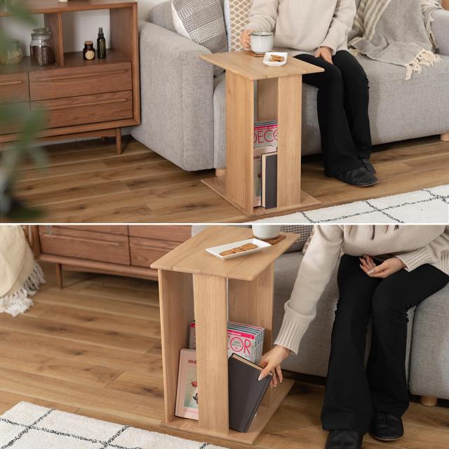 上下どちらも天板として使えるので、ソファの左右どちらに置いても使えます。