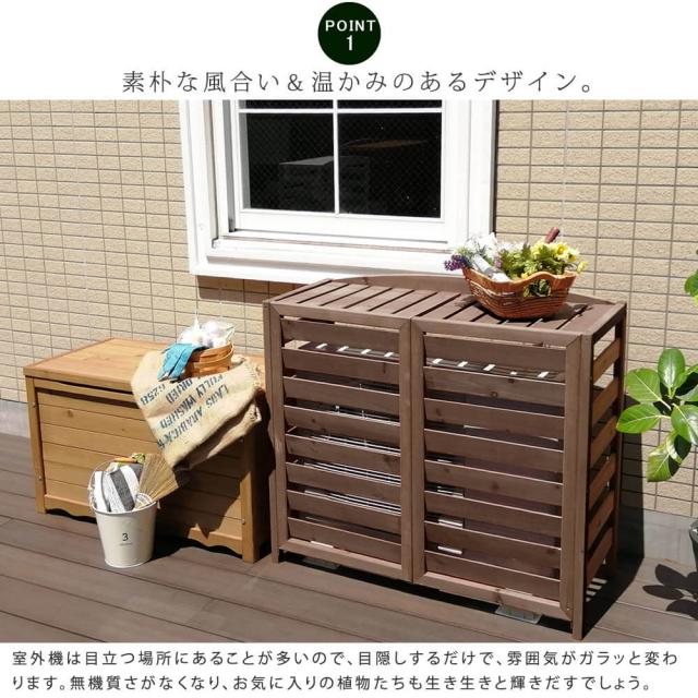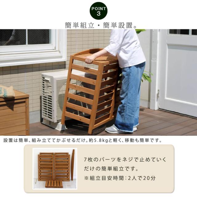 天然木 逆ルーバー 室外機カバー 木製 ホワイト ベランダ