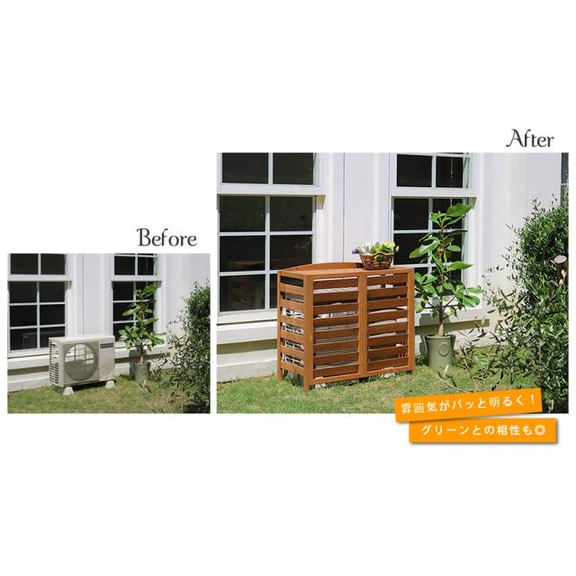 天然素材の室外機カバーなら、センスのいいお庭に